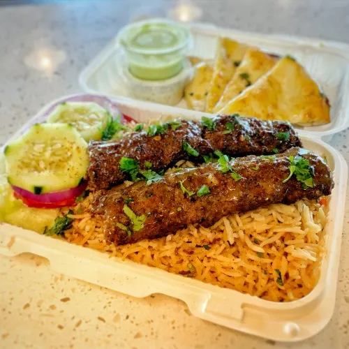 Beef Seekh Kabob Platter Blend of minced beef with onions, fresh green chillies, seasoned with spices and cooked over a flame Blend of minced beef with onions, fresh green chillies, seasoned with spices and cooked over a flame
