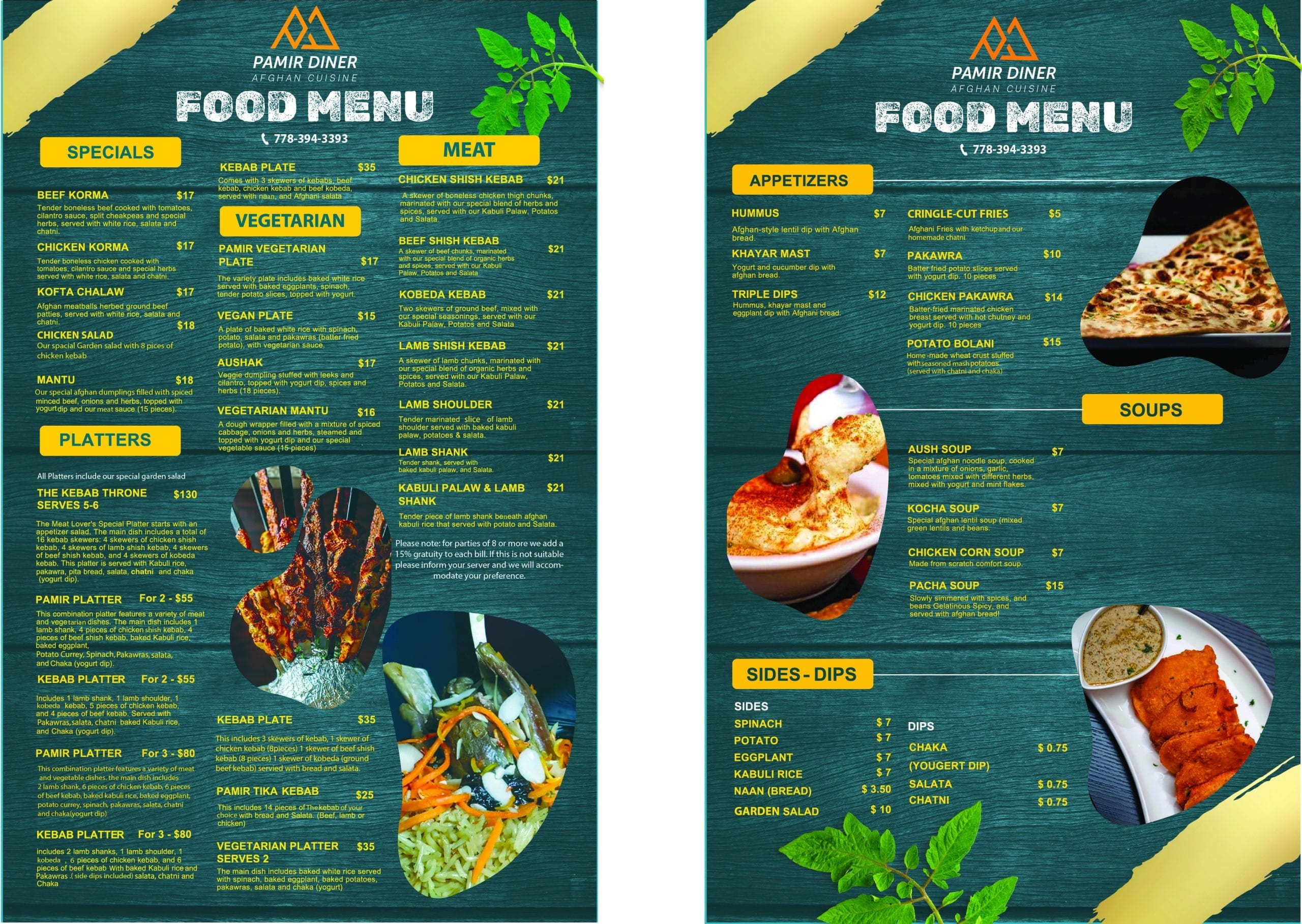 We are Pamir Diner, a family-owned restaurant born from the Yousofi family’s dream of sharing authentic Afghan cuisine in Vancouver. After immigrating from Afghanistan in 2009, they dedicated a decade to the food and hospitality industry before opening Pamir Diner in 2019. Our dishes are crafted with passion and tradition, offering a true taste of Afghanistan with every bite. From rich flavors to warm hospitality, we invite you to embark on a culinary journey that brings the essence of Afghan culture to your table.